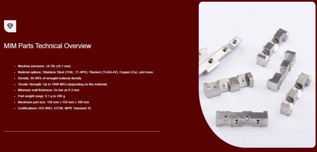• High Precision: Tight tolerances and consistent quality make MIM parts suitable for critical applications.